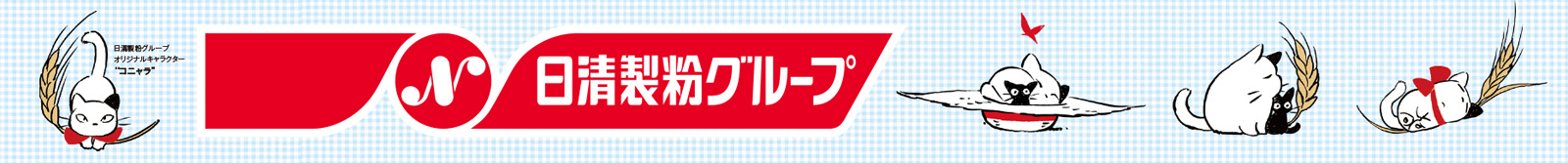 「コニャラ」は、当社グループが創業110周年を迎えた2010年に、スタジオジブリが制作した企業広告がきっかけとなり誕生した当社グループオリジナルキャラクターです。スタジオジブリの鈴木敏夫プロデューサーがあるとき、ふと、筆ペンで描いたネコのイラストが元となっており、名前は当社グループを象徴する小麦の「粉(こな)」にちなんで「コニャラ」と名付けられました。