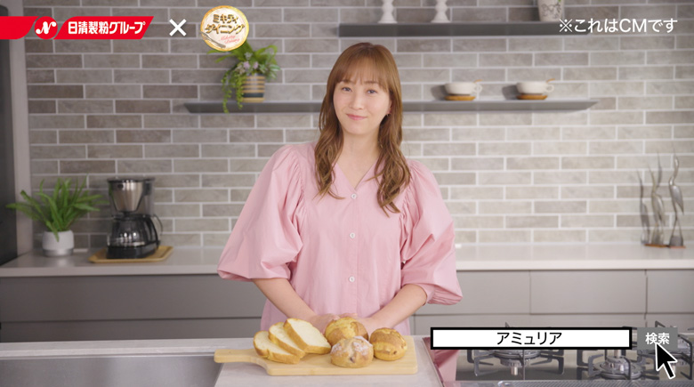 日清製粉グループの日清製粉株式会社(取締役社長:山田 貴夫)は、テレビ番組「ミキティダイニング」内のインフォマーシャル(番組連動CM)を通じて、当社が開発した高食物繊維小麦粉「アミュリア」を紹介します。インフォマーシャル内ではアミュリアのブランドアンバサダーを務めるタレントの藤本美貴さんが、アミュリアや同小麦粉を使用したパン、麺等の魅力を伝えます。番組は一都六県で放映されており、本年1月10日から3月21日までの放映各回で紹介します。