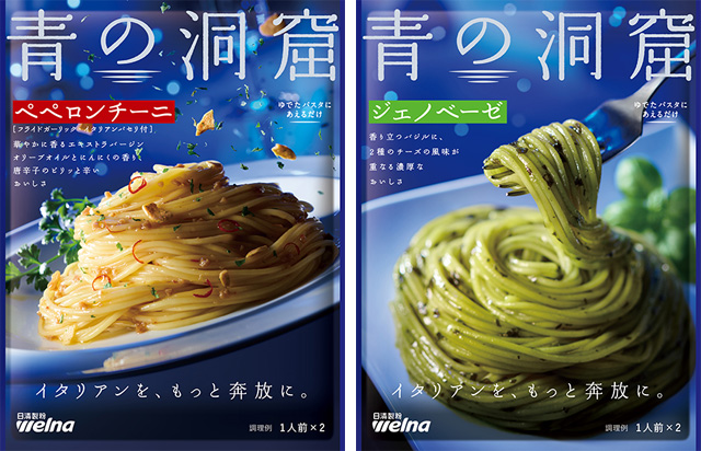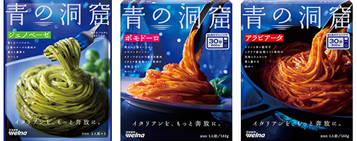 「青の洞窟」パスタソース あえるタイプの2品も新パッケージに!