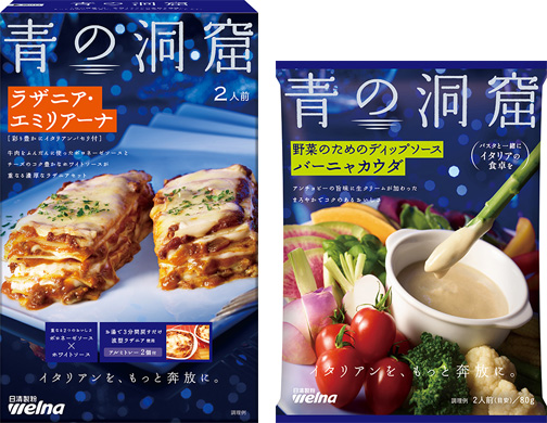 パッケージを「青の洞窟」ブランドの新デザインにリニューアル。「ラザニア・エミリアーナ」は、牛肉をふんだんに使ったボロネーゼソースとチーズのコク豊かなホワイトソースのマリアージュにより、濃厚でコク深い味わいを楽しめる製品です。「バーニャカウダ」は、アンチョビーの旨味が溶け込んだ生クリームが織りなすまろやかなディップソースで、野菜本来の味わいを引き立てます。