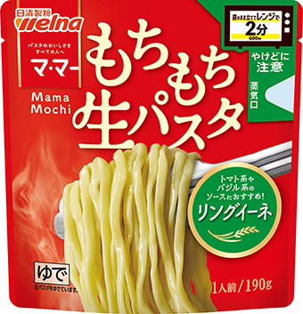 2025年秋の発売以降好調な「マ・マー もちもち生パスタ」シリーズに、今回、完熟トマトの旨みがつまったトマトソースと、バジルソースのダブルソースで仕立てた「完熟トマトバジル」を追加します。麺にはトマトソースやジェノベーゼと特に相性の良い、断面が楕円形のリングイーネを合わせました。仕上げにとろけるチーズをトッピングし、トマトの旨み・バジル・チーズが絡み合う満足感のある一品です。