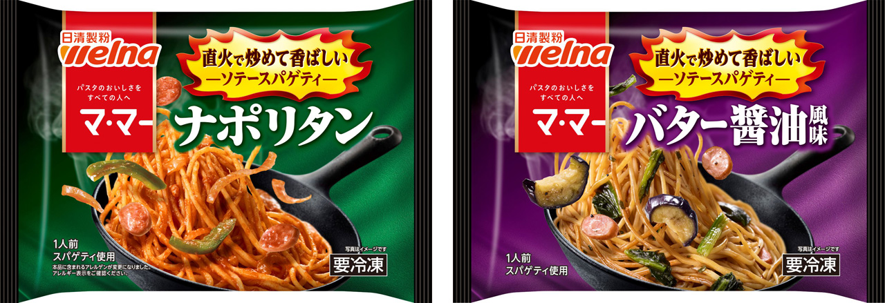 今回、新たに「ソテースパゲティ」シリーズとしてこの“炒めた香ばしさ”を際立たせた2品を発売します。従来「マ・マー THE PASTA」シリーズでお届けしていた「ナポリタン」「バター醤油風味」をラインアップし、「ナポリタン」は炒める温度・時間や原料を見直し、香ばしさを一層高めました。また、「バター醤油風味」は新たにソテー工程を加え、香ばしく濃厚な味わいに仕上げています。 “ソテーしたスパゲティ”ならではの深い味わいをご堪能ください。