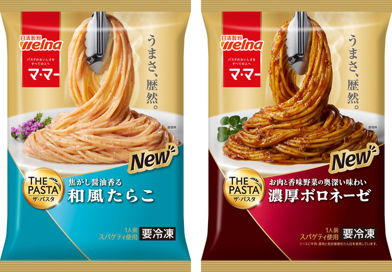 「マ・マー THE PASTA」シリーズはベーシックな人気のメニュー「濃厚ボロネーゼ」「和風たらこ」「濃厚カルボナーラ」「和風醤油」の4品のラインアップとなります。