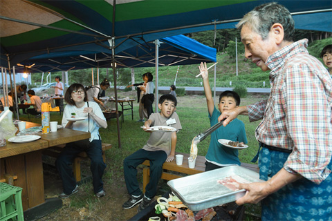 只見町の食材やとれたての野菜をふんだんに使用したマトンバーベキューやピザ・パスタ等の食事を提供し、只見町の自然の素晴らしさを味わっていただいています。