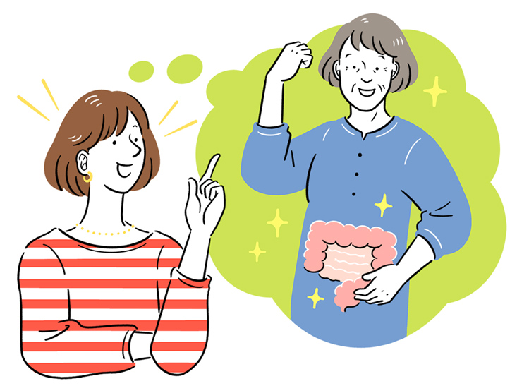 腸内細菌叢のバランスは、加齢によっても変化します。年齢が高くなるにつれて悪い菌が徐々に増え、多様性が低下し、乱れていきます。しかし、前述の通り腸内細菌叢のバランスは食事や生活習慣によって変えることができるため、それらを改善し、腸内細菌叢を若い状態に近づけることで、さまざまな病気や不調のリスクを低くすることができ、結果的に老化スピードを緩め、健康寿命を延ばすことにつながります。